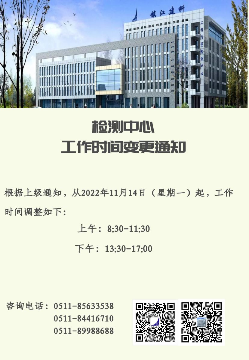检测中心工作时间变更通知